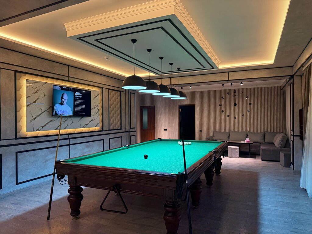 We spend evenings here all the time, there are closed halls, 3 of them and one open, 10-foot tables in closed rooms, 12-foot tables in the open. There is a bar, Wi-Fi, Internet set-top boxes on TV. Friendly receptionist. I advise you to spend your holidays👍👍👍👍
