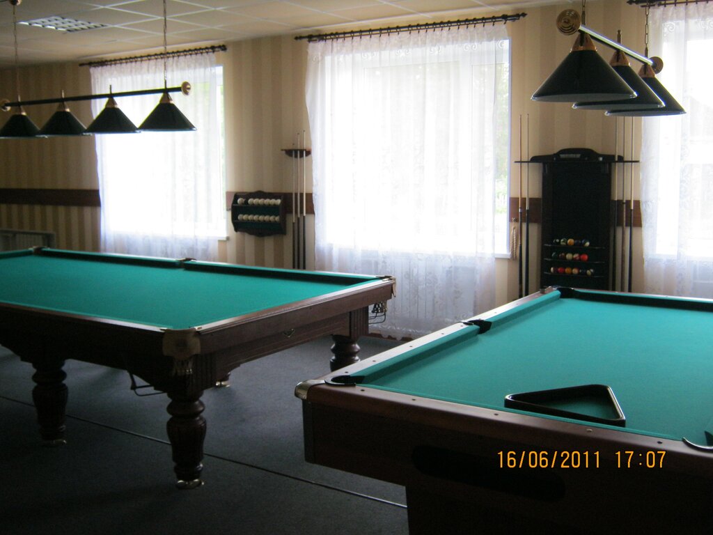 Бильярд на два стола американка и русский. Уютно. Можно заказать напитки и еду.