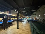 Отличный новый бильярдный клуб, который посетили уже 2 раза! Все новое: столов русской пирамиды штук 16, 4 стола для пула. Снукер не видел. Кии приносят разборные в чехле. Кии очень хорошие. Над каждым столом на стене планируется видеокамера - удобно. Можно на видео впоследствии разбирать свои партии и ошибки. Меню пока небольшое, но нас об этом предупреждали, клуб пока открыт в тестовом режиме. Update: Меню изменили и существенно расширили. Пробовал стейк из черной трески - было очень вкусно Официанты подходили, ненавязчиво интересуясь не нужно ли что-то еще. Покинутыми себя не чувствовали. На столе есть кнопка вызова, для нетерпеливых. Борщ был очень вкусный. Кофе неплохой. Евгением Таллер провел для нас с сыном индивидуальную парную тренировку. Первый час учили базовую технику стойки и удара. Полчаса поиграли - Евгений поправлял ошибки. Полтора часа тренировки пролетели незаметно. Спасибо!