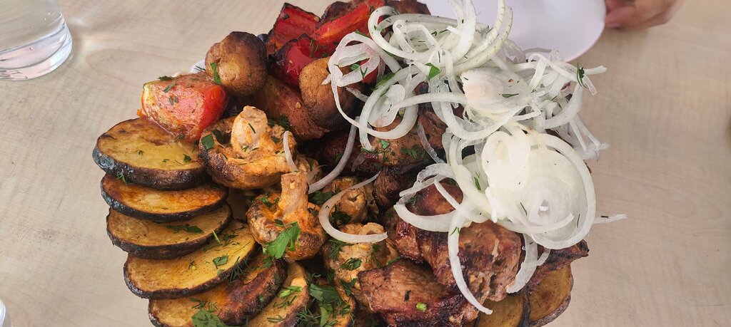 Заказали доставку шашлыка, крыльев на мангале и картошку по деревенски. Через 40 минут всё уже было у нас, всё очень вкусно. Спасибо.