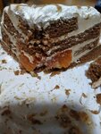 Домашние ванильный и шоколадный бисквиты, сметанный крем, грецкие орехи. На сайте указана цена ..
