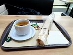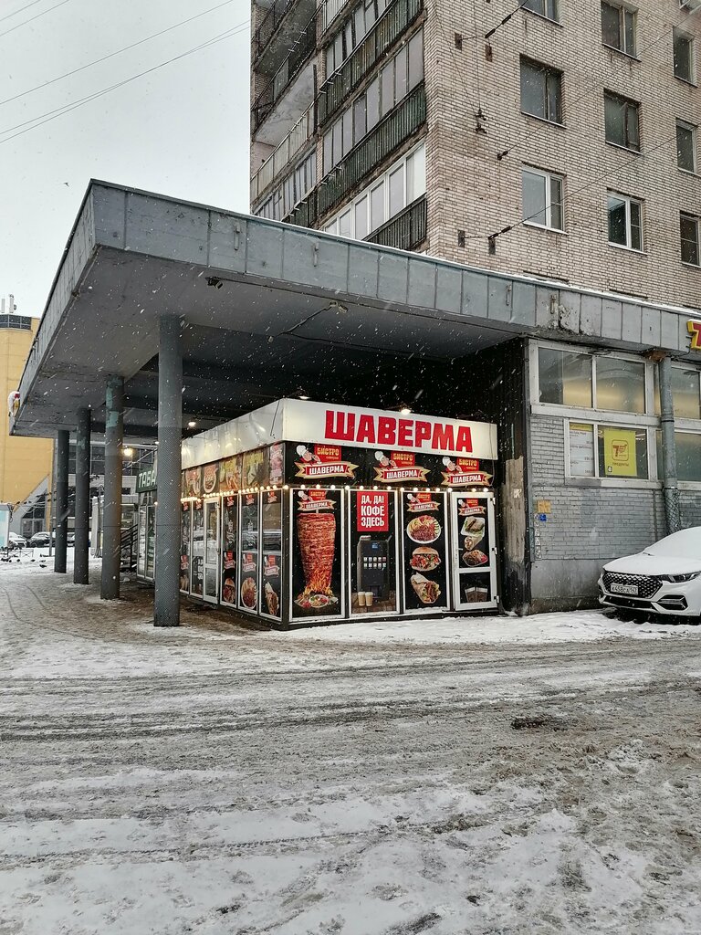 Небольшой ларек. Мест достаточно, в помещении чисто, женщина повар вежливая. Шаверму готовила в перчатках. Есть телевизор, где показывают МузТВ (а хотелось бы балет с лебедями). Заказ подают на подносе, спасибо, что посуда не одноразовая, мой внутренний гринписовец доволен. Из минусов: цены выше среднего (чашка чая 100р незаслуженно для такого заведения), сама шаверма ярко выраженного вкуса не имеет, овощей не чувствуется, скорее всего не очень свежие, нет не только санузла, но даже санитайзера, чтобы не есть грязными руками, в помещении очень жарко, и это при том, что на улице ноябрь, не знаю как там летом.