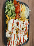 Шаурма Абу-Даби — это сочная и ароматная закуска в лаваше мини, наполненная свежими овощами: капустой, огурцом, помидором, а также солёным огурцом. Добавляет пикантности и яркости вкусу нежное картофельное пюре и лимонный сок