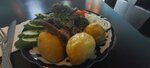 Мрачное помещение с дешёвыми ободранными дерматиновыми диванами. Набор блюд стандартный узбекский - самса, плов, казан-кебаб, лагман в 2х видах, шурпа и тд. На каждом столе стоит бутылка с уксусом, как принято в Узбекистане. Я взяла казан-кебаб, подкупило, что он стоит здесь 400р (почти везде от 450р). Порция большая, щедро положили сезонных овощей и лук. Овощи сочные и свежие. Блюдо неплохое, но общий вид-забегаловки, к сожалению. Зал был пустой.
