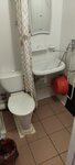 Бюджетный вариант, на троечку, туалет, душ, умывальник одно помещение. Горячую воду можно и не застать. На этаже есть микроволновка, кулер, утюг.