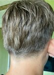 Были с сыном, Показала фото как подстричь, все лето отращивали волосы для этой прически, несколько раз повторила что необходимо оставить обьем и сделать шапочку. В итоге вывели ретенка с прилизанными волосами, короткостриженного еще и полбаллона лака на волосах 😵‍💫😵‍💫 сейчас волосы вообще не уложить, в разные стороны торчат,