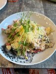 Повелись на рейтинг 4,8, не понятно кто ставит положительные оценки🤷🏻‍♀️ принесли меню, в одном из которых не хватало три страницы , муж решил уточнить у официанта, что можно съесть вкусного в их кафе, на что был ответ, все, что вкусно долго ждать))) на вопрос , что быстро и вкусно, сказали фри и салаты! В общем заказали два мисо супа, два салата с говядиной, двое крылышек, две картошки фри, нагетсы, салат цезарь с курицей, и напитки. Я это все к тому, что все приносили в обратном порядке, т.е суп в итоге был последним, и к тому, что посуда от съеденных блюд не убиралась! Для понимания нас было трое, и вот все тарелки остались стоять даже после нашего ухода! По поводу качества еды…. Все оставляет желать лучшего, кроме фри и крыльев! Цезарь это просто название, он заправлен майонезом, салат с говядиной, это салат с ветчиной, , говядины я не нашла. Мисо суп, это вообще трудно назвать мисо, он сладкий, есть его вообще не стали! Ну и обслуживание конечно на 0. Да, ценник более, чем бюджетный, но дорого, не значит вкусно, не сработало 😁 дешево, и невкусно от слова совсем! И да, лимонад домашний, это химический напиток, даже не того вкуса, который заказывала, маракуйя видимо закончилась, поэтому был сироп клубники))) ну а про туалет, тут много писали, это вообще жесть… поэтому откуда 4,8 не понятно!