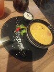 Начну с плюсов: стильный интерьер, понравились картины, вписываются в концепцию ресторана мягкие, удобные кресла разнообразное меню коктейль клубника-каламанси понравился А теперь самое интересное: заведение позицируется как ресторан, а в любом похожем заведении приборы Приносят в зависимости от того, что вы заказали, а тут непонятно почему приборы кучей лежат в корзинке прямо на столе, где на них садится пыль, и всё, что потенциально может летать и куда-то садиться заказав 3 позиции блюд- основное, закуски и десерт в виде чизкейка, первым принесли именно чизкейк, и то официант сначала шёл в мою сторону, потом развернулся, ушёл *видимо уточнить сюда ли нести* и только потом подошёл и поставил, интереснее показалось именно то, что в первую очередь принесли именно десерт пара слов про чизкейк. Случалось так, что я пару раз брал чизкейк в Перекрёстке, и вот тут он один в один, вкус, текстура, всё такое же. В целом это отвечает на вопрос, почему его могли принести первым Курица карри с пюре....к пюре вопросов в целом нет, оно неплохое, а вот саму курицу уже как будто пожевал кто-то до меня. Даже цвет был не характерный для карри, а слишком бледный, но в целом съедобно Видел в отзывах, что хвалят местную выпечку, но желания её заказать после всех остальных блюд не возникло