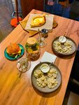 Посетили данное заведение. Из несомненных плюсов: 1. Интерьер - Внутри красиво, всё сделано со вкусом, дизайнер мастер своего дела. 2. Быстрая подача - блюда были поданы в течении пяти минут после заказа. 3. Официанты - Вежливые, хорошо знающие меню девушки. Из минусов: 1. Сквозняк - В помещении ощутимо так сквозит. Сняв верхнюю одежду сидеть было довольно таки неуютно. 2. Еда: Здесь разобью на подпункты, так как хочется пройтись по подробнее. 2.1. Основные блюда - Не могу сказать ничего плохого, эффекта "ВАУ!" не вызовут, но хорошие и вкусные. 2.2. Сет из крыльев, картошки, гренок - Позабавил. Так как в описании что то про "Легендарная акция, сет на полуметровой доске и т.д.". По факту сет занимает примерно половину от размера доски на которой подаётся. Крылья вкусные, картошка и соусы то же, гренки 50/50 так как половина традиционно зажаристые сверху и мягкие внутри, а половина зажаренный сухарь который только грызть. 2.3. Булочки - Первое место где мне подали старый хлеб. 2.4. Напитки - Чай и какао вкусные, горячий шоколад к сожалению приторный и больше похож на порошковый. Шоколад не стали пить и вернули. 2.5. Десерты от шефа - Ужасны. Наполеон сухой и моя жена просто отказалась его есть, рафаэлло сильно ниже среднего, его я доедал из принципа. Сюда мы больше не пойдём.