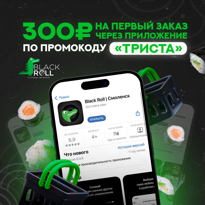 первый раз в Смоленске, арендовали в доме со львами квартиру( кстати, сработало ваше меню в нашей арендованной квартире) на первом этаже Роллы с крокодильчиком)) в день рождения нагулялись, готовить не хотелось, в ресторан уже тоже.. а перед театром надо было поесть) и зашли, девушка быстро помогла подобрать роллы без рыбы ) и пока мы выгуливали собачку, нам все подготовили) забрали, поели)) вкусно очень!!! мы вернемся еще в ваш прекрасный город!!