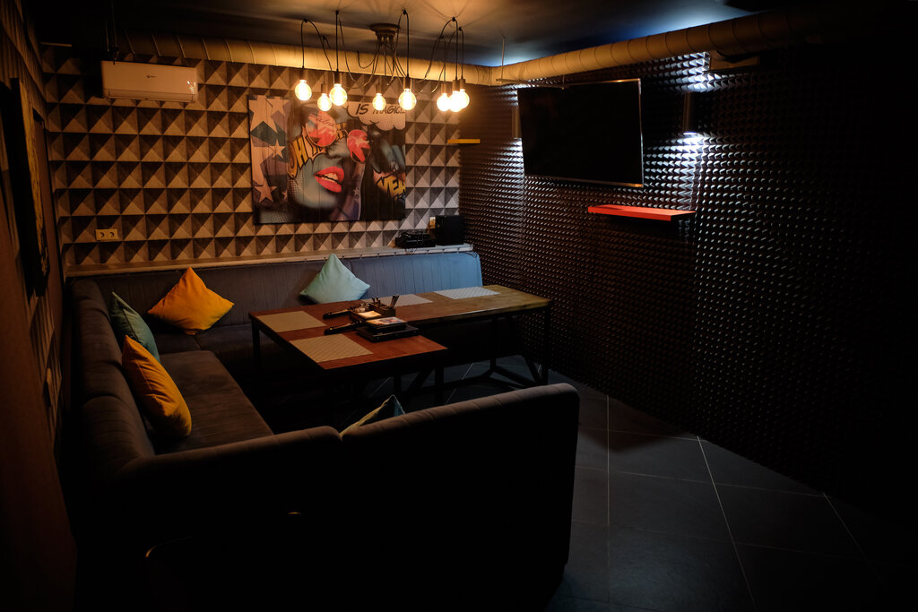 Были в караоке-зале. Это отдельное помещение вместимостью человек на десять . Плюсы: никто не мешает, нормальный звук. После жарких импровизированных танцев с вешалкой удостоились фруктовой тарелки от шеф-повара😂😂 (смотрят камеры поганцы))) .Шустрые официанты. Минусы: караоке-система старая, многих песен попросту нет. Хреновая вентиляция