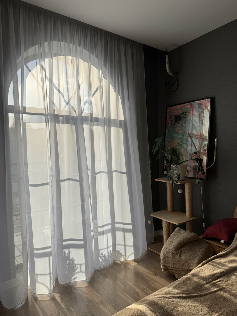 We turned to the bedroom for curtains. It was impossible to sleep, as if it were a day outside, because of the undergrowth of the neighboring houses. We helped you choose the color and fabric. Immediately, the interior began to play with other colors! When we applied, we had absolutely no idea what we wanted. The cabin has a wonderful atmosphere, very comfortable. It was installed quickly. In general, everything is great. We will come again)