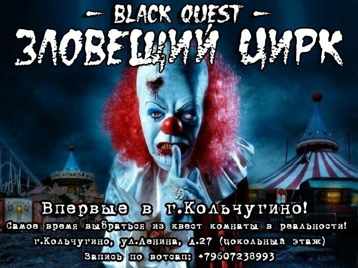 Квест "Зловещий цирк" - это захватывающее приключение, которое погружает вас в атмосферу таинственного и загадочного цирка. Отлично проработанные загадки, интересные испытания и увлекательный сюжет делают этот квест по-настоящему захватывающим. Атмосфера цирка, наполненная загадками и тайнами, создает удивительное ощущение участия в настоящем приключении. Рекомендую всем любителям загадок и тайн окунуться в мир "Зловещего цирка" и насладиться увлекательным квестом!