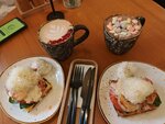 Вкусно, но сервис плохой, ждали завтрак 20 и 30 минут. Пока ждали основную еду, принесли десерт и напитки)) Так что лучше уточнять при заказе и так очевидную очередь подачи. Я заказала картофельную вафлю с индейкой. Индейка горячая, вафля холодная. Не знаю, так ли задумано, если да, то идея так себе. Мч взял Blanche Заварок с лососем, вкусно, но лосося совсем мало было. На десерт был вроде чизкейк с яблоком, очень вкусный.