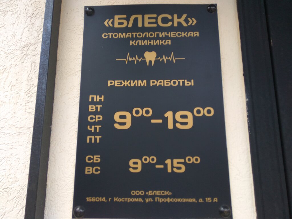 Клиника очень понравилась Я сам из соседней Ивановской области, скажу честно в Иваново такой клиники как Блеск не найдёшь,всё семьёй ездим в Кострому лечить зубы, в клинике все врачи отличные специалисты, клиника подойдёт как для взрослых так и для детей. Рекомендую 👍