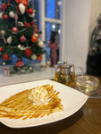 Само заведение небольшое, были с утра, на улице было сухо, однако пол в заведении был грязный. Девушка, которая обслуживает и готовит очень немногословна, когда озвучивает чей заказ готов, не слышно и не понятно, когда мало народа, это конечно не проблема, но в целом не очень приятная девушка. Блины прям очень на 3+ из 5 , если не ниже, сухие, начинка не вкусная. Ну лично я бы больше в это заведение не зашла. А, нет, 5 могу поставить чаю в чайниках, действительно вкусный