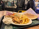 Очень очень вкусная шава, а я их много где ел Кажется одно из редких (если не единственное) место, где повар не просто побросает все ингредиенты вместе и зальет соусом, а тщательно перемешает, чтобы появилась прекрасная консистенция. Зачастую бывает так, что каждый укус это либо куча соуса, либо одни овощи, либо сухое мясо, НО НЕ ТУТ! Тут в каждом кусочке будет все вместе в выверенном балансе. За это мега респект. Вкус тоже выше всяких похвал Отдельно порадовало, что картофель готовят специально под заказ, то есть он максимально свежий, только что из фритюра