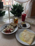 Блины сейчас делаются с минимальными добавками масла, яиц. Совсем одна мука. Жаль, что это заведение работает не для того, чтобы было вкусно, но только, чтобы зарабатывать себе деньги. Помоему это предел, пора что то менять.