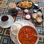 Не сомневайтесь на счет этого скромного заведения снаружи. Внутри очень уютно, чисто, а самое главное вкусно. Попробовали суп гороховый, салат гнездо глухаря, мясо по-французки (готовиться с картофелем, очень сытное и сочное), и салат овощной. Очень все понравилось, свеже приготовленное. Салат из овощей, вроде обычный салат, но заправка очень вкусная. Вообщем рекомендую данное заведение.