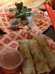Два спринг ролла с курицей, креветкой, рисовой лапшой бун, манго, дайконом, морковью, свежим огурцом и салатом. Подается с соусом Хойсин, в соус добавлен арахис (2 шт.)
