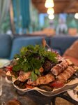 Катались на велосипедах с парнем, вымотались, оголодали, и решили зайти перекусить и восполнить водный баланс! В дневное время людей немного. На улице сидело лишь два столика, считая с нами, так что было довольно комфортно. Также на участке ресторана есть две юеседки со столами: первая - для курящих людей, вторая - для некурящих. За это огромный и жирный плюс ресторану! Нас с молодым человеком обслуживал очень приятный и милый парень. Совсем юный, а мы все всё понимаем, так что я постоянно оставляю 15-20 процентов чаевых от чека. Спасибо за уважение и приятное общение! Еда изумительна. Хоть мы и взяли два блюда, все равно по вкусу еды, по этой сочной нежной курочке в салате определить нетрудно: повара действительно мастера своего дела! Туалеты, кстати, чистые, вкусно пахнут, нет грязи или ржавчины. Спасибо этому месту за вкусную еду, отличное обслуживание и гостеприимность! Мы еще к вам обязательно вернемся попробовать шашлык.