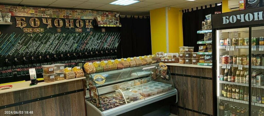 Выбор напитков большой. Выбор снеков попроще. Персонал дружелюбный и вежливый. Расположен в глубине спального района (местным удобно). Есть где припарковаться.