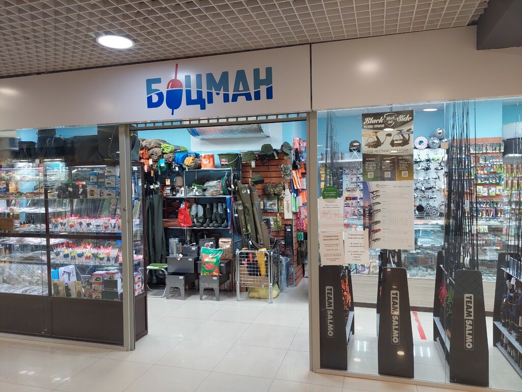 Магазин сети "Боцман" по продаже товаров для рыбалки охоты и туризма. Конечно основное направление это рыбалка . Общаясь с продавцами понимаешь, что консультируют тебя со знанием дела, не плохо разбираются во многом связанном с рыбалкой. Этот магазин расположение в торговом центре "Цветной парк" . удобная парковка присутствует.