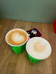 Кофе вкусный. Бариста Наталья отлично делает все напитки, хожу только в ее смену (только для нее пять звезд, делает милые арты на кофе). Интерьер не плохой, но качаются столики. Цены на сэндвичи, пончики и так далее очень большие. Еще и повысились. Еще если посидеть очень жарко … кондиционер кажется не работает.