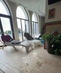 Зона spa интерьерно соответствует по стилю всему отелю-замку, это замечательно. Панорамное окно-стена с видом на открытый бассейн визуально расширяет пространство. (Холод не позволил нам насладиться последним). В целом замечательное spa: сауна сухая и жаркая, хамам влажный и теплый, бассейн прохладный, зона джакузи бурная и горячая, в бассейне водопад и противоток. Полотенца и простыни сухие, чистые, ровно в стопке на входе. Минусов немного, и они досадны: баня не работала, душ впечатлений не работал, дверку шкафчика ключ не открывал, надписи на дверях неясны, тапочки непригодны: скользят. Но: спасатели присутствуют, подсказывают, куда и что. Резюме: приеду снова и привезу внучку.