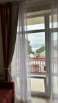 Отличный отель, первая линия, виды на море шикарны, завтраки вкусные! Администраторы умнички, помогли с заменой номера, так как мансарда лично для нас оказался неудобен, муж бился головой)) Парковка на территории платная и только на четыре машины - бронируйте заранее. Были три дня в октябре, уехали очень довольные!