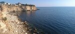 Красивое место! Остановка «Сады Пилот-2» Автобус 77 Чистая вода. Разнообразной формы скалы с небольшими пещерами. Рядом с остановкой есть кафе «Бохо», где можно посидеть за чашкой чая на веранде, любуясь морем. Если идти по левой стороне берега, увидите пляж, чуть выше будет красивая беседка. По правой - Херсонесский маяк, а по пути к нему внизу, у самого моря качели.