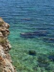 Отличное место. Чистейшая вода. Узкая полоска пляжа под высоким крутым берегом. Говорят, есть опасность обрушения, лучше выбрать место с оглядкой на это обстоятельство. Пляж каменный. Не просто камешки - плиты огромные, валуны. Под водой камни покрыты водорослями, напоминающими мох. Идешь, как по ковру. У берега между камней резвятся крабики, в воде много рыбёшек, плавать в маске или с очками - одно удовольствие.