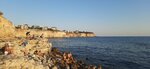Я бы не назвала это пляжем. Это скалы, которые относительно удобно расположены, так что с них можно заходить в море и на них можно загорать. А над скалами буквально в двух шагах проезжая часть, остановка транспорта, кафе — полежать с комфортом негде. Да и никакого пляжного комфорта нет. Вид замечательный! Особенно на закате