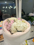Французская роза, кустовые розы silva pink, диантусы, гортензия , перышки
