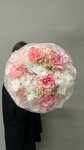 Монобукет с одной из самых желанных кустовых пионовидных роз сорта Сильва Пинк в фирменной упаковке "облачко".