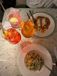 Отличная еда, действительно вкусно. Ценник выше среднего. Здорово, что есть большая детская комната с лазалками и горкой, стол с карандашами порисовать и мы даже попали на бесплатного аниматора. Из еды советую попробовать треску и десерт, что на фото. К сожалению, не помню название, но похожее фото есть в меню. Вкус между тирамису и пирожным-картошкой. Друзья брали супы, равиоли, все вкусно. Пиццы небольшие, размером с обычную тарелку, делятся всего на 4 кусочка. Не могу сказать, что вау.