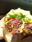 Почитала хорошие отзывы и решила попробовать бургер, была очень расстроена качеством котлеты, потому, что по фото видно, что она сырая! Такое нельзя продавать. Может остальные блюда нормальные, но бургер точно нет!