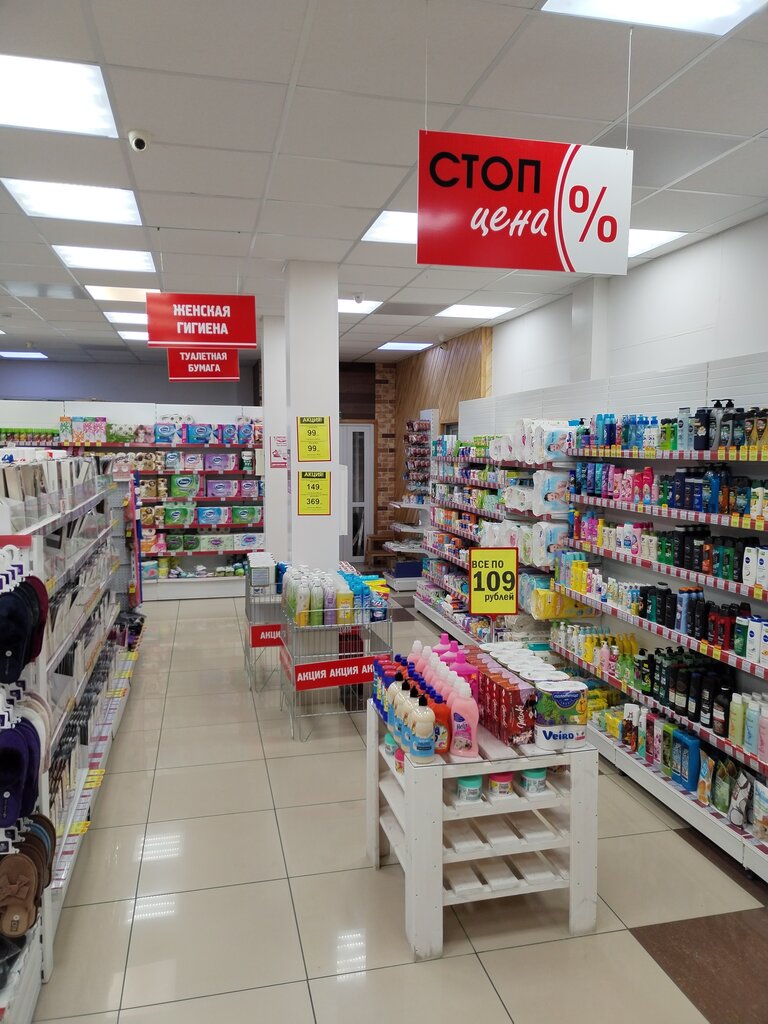 Магазин напротив моего дома. Покупаю там бытовую химию. Есть скидочная программа. Кроме химии беру там русские кремы для лица и рук. Женщинам рекомендую. Есть для разных возрастов.