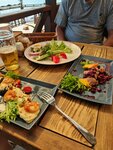 Хорошее расположение. Красивый вид, особенно с веранды. Разнообразное меню . Вкусно. Порции большие. Вино можно приносить с собой, винной карты нет. Немного не справляются официанты - бывают долгие ожидания, но и гостей при этом не мало.