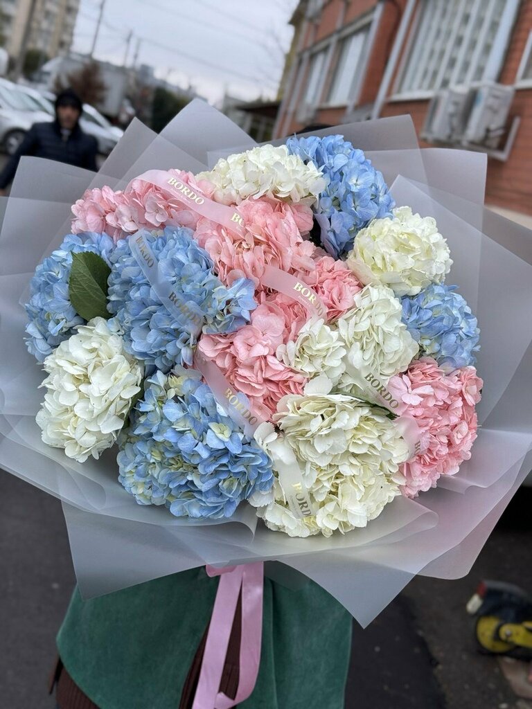 Букет из гортензий и белых хризантем в Краснодаре