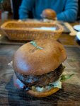 Посещали данное заведение с мамой. Первое впечатление было замечательное, приятное заведение, все чисто и аккуратно. Очень приятная атмосфера. Вежливые официанты, встретили, посадили, дали меню. А дальше что-то пошло не так :( В меню в десертах написана сырная тарелка, заказали бургер, салат с ростбифом и на горячее цыпленка из осеннего меню, капучино с сиропом и американо. Официант не спросил как подавать блюда в итоге ели с мамой раздельно. Принесли капучино и отдельно сироп. У бургера был холодный низ. Цыпленок из горячего оказался салатом (даже не горячим). Доски на которых выносилась еда странно пахли. На мой взгляд заведение с огромным потенциалом, но эти недостатки к сожалению портят впечатление :(
