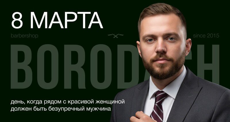 8 марта — день, когда рядом с красивой женщиной должен быть безупречный мужчина. Идеальная стрижка. Чёткая линия бороды. Уверенность в каждо...