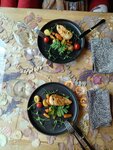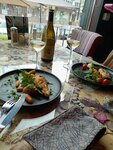 Красивый интерьер, вкусные блюда. Но долгая подача блюд, при этом посетителей было не много. Бутылку вина принесли уже открытую, хотя по правилам должны открывать при нас.