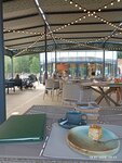 Очень рада, что в Лыткарино появился достойный ресторан с красивой локацией. Цены не маленькие, но кухня очень достойная. Пицца с грушей и горгонзолой хороша, лимонады вкусные, медовик тоже очень вкусный. Разочаровал только капучино почти полным отсутствием пенки. Официантка сказала, что у них пока стажёр в баре , о проблеме знают и над этим работают. Обслуживание при довольно плотной посадке было в рамках разумного ожидания, официанты стараются, посуду убирали быстро. Есть детское меню, в зале и на веранде чисто. Стильный интерьер и красивая посуда для подачи. Из минусов: не было некоторых позиций в меню, из б/а коктейлей вообще ничего не было. Один из столов с видом на озеро стоял с табличкой " Зарезервирован " весь тот час или больше, что мы там были, хотя народ приходил и для них не было свободных столов. Ещё момент, со столов сдувает салфетки и они массово валяются вдоль стены ресторана на песке. Очень надеюсь, что их вовремя подбирают и не засоряют пляж.