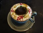 Приятно была удивлена комплиментом от шефа - профитроль с куриным паштетом и шампанское. Гляссе-арт (скорее, аффогато) ваше всяческих похвал, как впрочем и эспрессо, которое я заказывала отдельно. Еда оказалась тоже вкусной: сулгуни в меру соленый, люля из баранины - сочные и вкусные. Если мне доведётся попасть в эти края, обязательно зайду ещё раз.