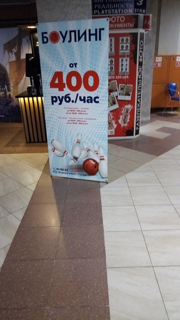 Отвратительный сервис в боулинге. Отмечали день рождения ребёнка, сотрудница одна, нигде не успевала. Ждали очень долго, чтобы сделать заказ на напитки и пиццу. Дети уже пить, есть хотели, спустя час игры только принесли. Сотрудник одна на зал, нигде не успевала, ни на кассе, ни на заказах, то куда-то пропадёт. В итоге день рождение ребенка почти был испорчен. Ужасного сервиса я нигде не видела, как в данном боулинге. Одна женщина даже не выдержала и ругалась на весь зал, т к минут 20 ждала сотрудника, чтобы получить обувь. Дети даже ужаснулись. Руководство данного заведения видимо наплевательски относится ко всему происходящему, т к это не единичный случай в боулинге. Почему только один сотрудник и тем более в выходной день работает в боулинге? Ни в одном боулинге такого бардака нет, как в Атриуме. Теперь сделали выводы и никогда больше не будем посещать боулинг в Атриуме.