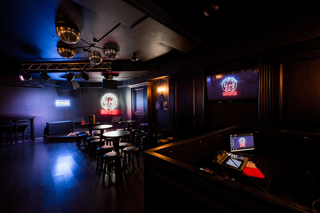 Мое любимое место) огромный плюс что нет русскоязычных песен, так что точно не будет шансона) до ковида депозит отсутствовал, так что те кто говорят что дорого, просто не знают что раньше можно было и за купленную бутылку воды в баре, петь хоть всю ночь. Оплата наличными меня не напрягает. Банкоматов рядом с караоке куча) Еда вкусная, особенно радует, что есть в меню позиции для веганов. Единственное, если вы хотите успеть исполнить больше песен и не ждать длинную очередь, то приходите к открытию или в будние дни. После 2 часов ночи кстати тоже людей в зале мало) хамского отношения в мою сторону от персонала никогда не было. Самое крутое в Боуи - это атмосфера сцены. Ты как будто пришел на маленький, уютный концерт-квартирник. Жаль только что заведение закрывается после 30 декабря. Надеюсь они откроются в новом месте и будет возможность продолжать посещать такое уникальное караоке без Лепса!
