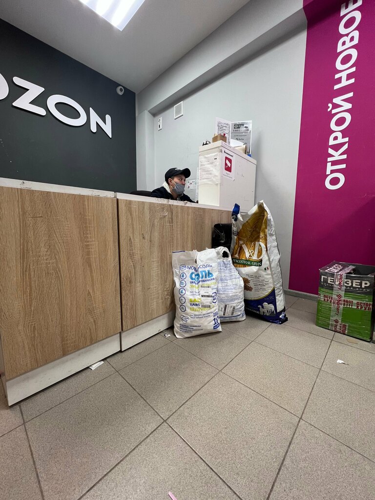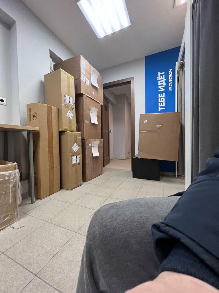 Получение посылки заняло 10 минут. При условии, что больше кроме меня никого не было - это много. Компьютер не работает, его удалённо кто-то синит на громкой связи и матерится, администратор нервный, вокруг грязно и обшарпано. Впечатления грустные. В этом же пункте выдаётся и Озон. Брендировано всё под него.