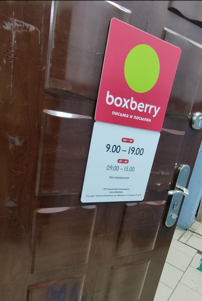 Работает до 19.00 !!!! Пришел в 19.15 пункт работает , но отдать посылку боксебери отказались . На след день пришел в 10 утра , 15 минут ждал пока сотрудница накурится на улице . Никогда никто не здоровается и тд . Я такого ужасного сервиса давно не встречал. Внутри пункта грязь и бардак . Больше сюда не ногой . Благо есть что выбрать .
