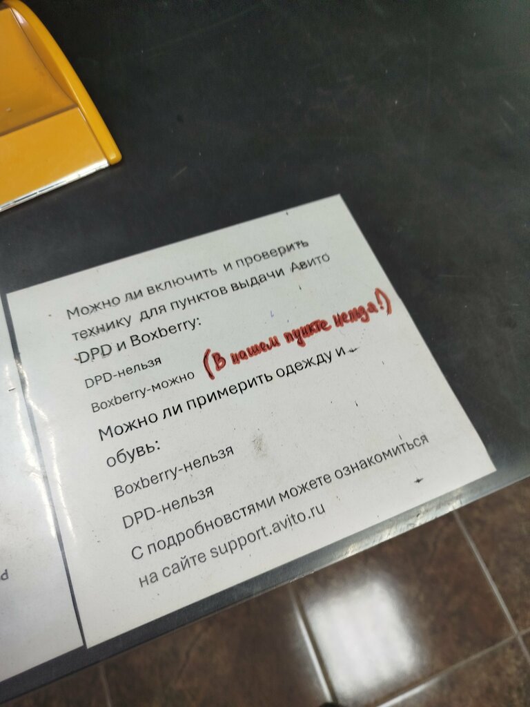 Самое отвратительное отделение в городе Евпатория . Получаю по 7 посылок в неделю , все отлично , на отделении на Некрасова , по дурости разок заказал на эту шарашкину контору . Работник с придурковатым лицом объявил мне , что правила Боксберри у них не действуют , и они придумывают правила сами . Подозреваю , что лицо у администрации не умней чем у работника , раз уж потакает беспределу . Категорически НЕ СОВЕТУЮ данную точку выдачи . Ниже привожу пример , как ручкой приписываются правила к общим .
